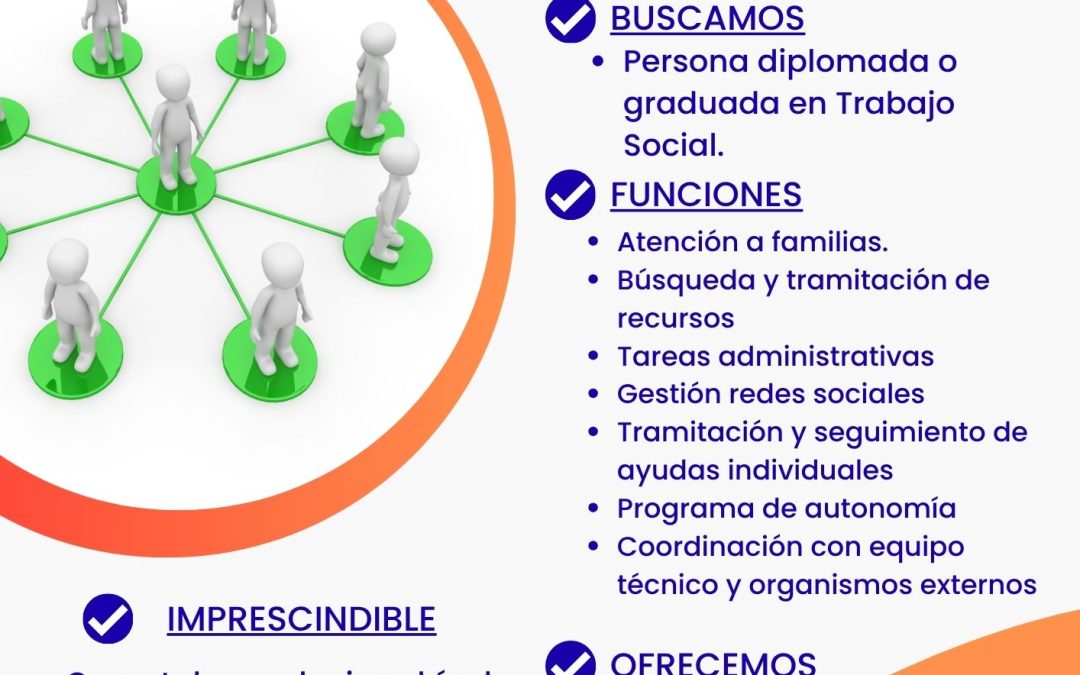 Buscamos persona diplomada o graduada en Trabajo Social para realizar funciones de: