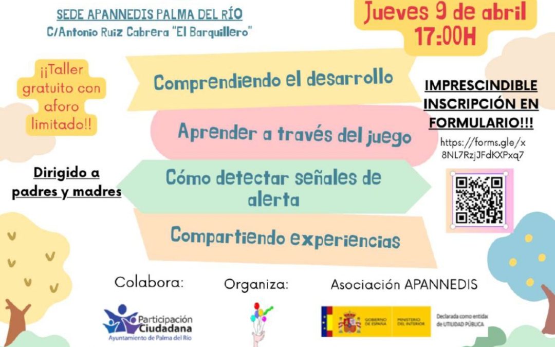 🎉El próximo jueves 9 de abril, tendrá lugar en nuestra sede de Palma del Río, un taller dirigido a MADRES Y PADRES, sobre Desarrollo Motor y Señales de Alerta en edad Temprana, en el que se hablará sobre: